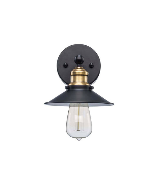 1-Light Black and Brass Wall Sconce Light Fixture with Metal Shade