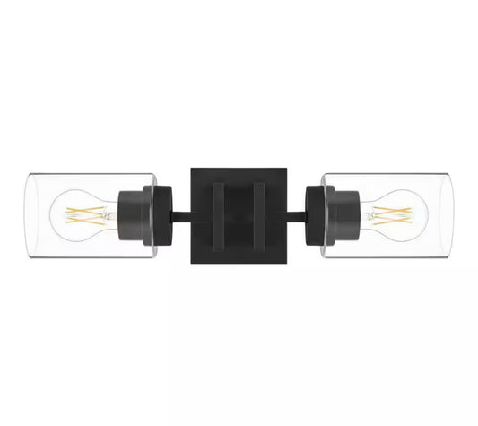 19 in. 2-Light Matte Black Vanity Light Fixture