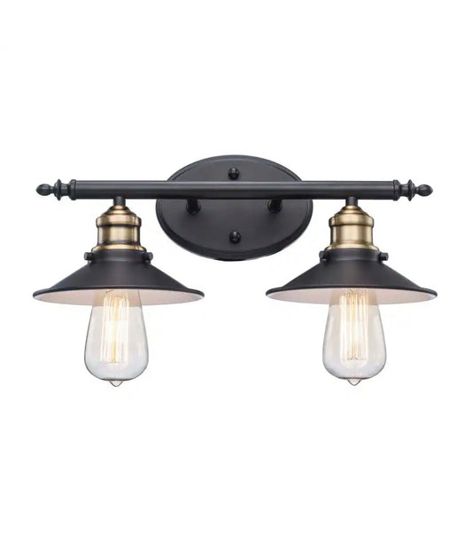 16 in. 2-Light Black and Brass Bathroom Vanity Light Fixture with Metal Shades