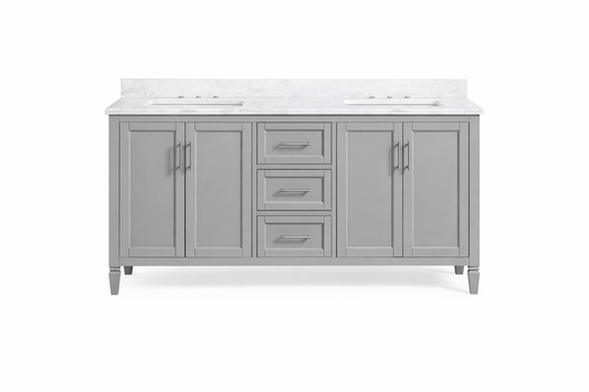 72 in. Double Sink Bath Vanity in Gray with Carrara Marble Top