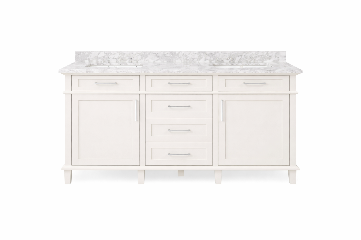 60 in. Double Sink Bath Vanity in Off White with Carrara Marble Top
