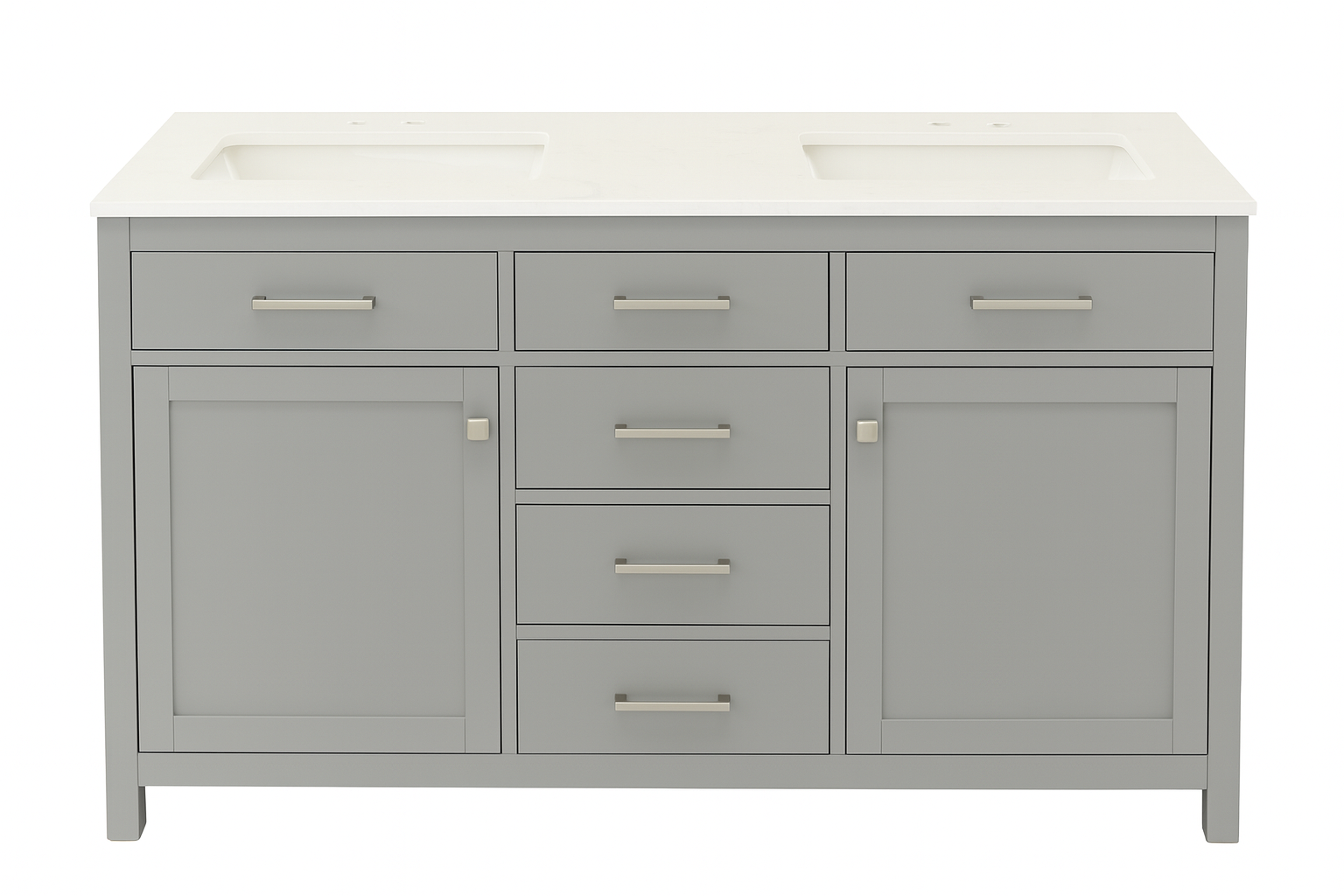 60 in. Double Sink Vanity in Grey with White Marble Top